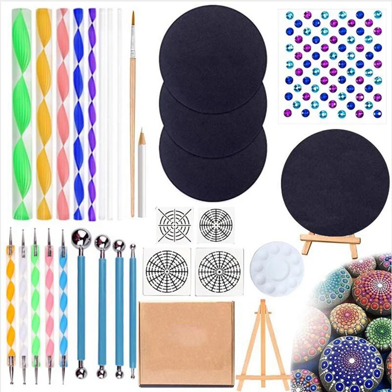 [Muti-functional] 29pcs mandala dotting tool set could meet all of your needs, compatible with watercolor, oil, gouache, acrylic painting, including Rocks Painting, Nail Dotting Coloring, Drawing and Drafting Art Supplies. And 4 different stencils could max interest including handmade craft and imagination, which is extremely important for children. No sharp edges to cut yourself.