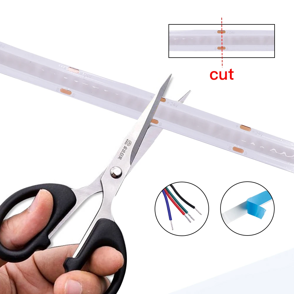 5 м RGB COB Светодиодная лента 12 в 24 В 840 светодиодов/м FlexibleTape лента FOB 10 мм цветная 30A Bluetooth управление приложением высокая плотность RA90 линейное внутреннее декоративное освещение