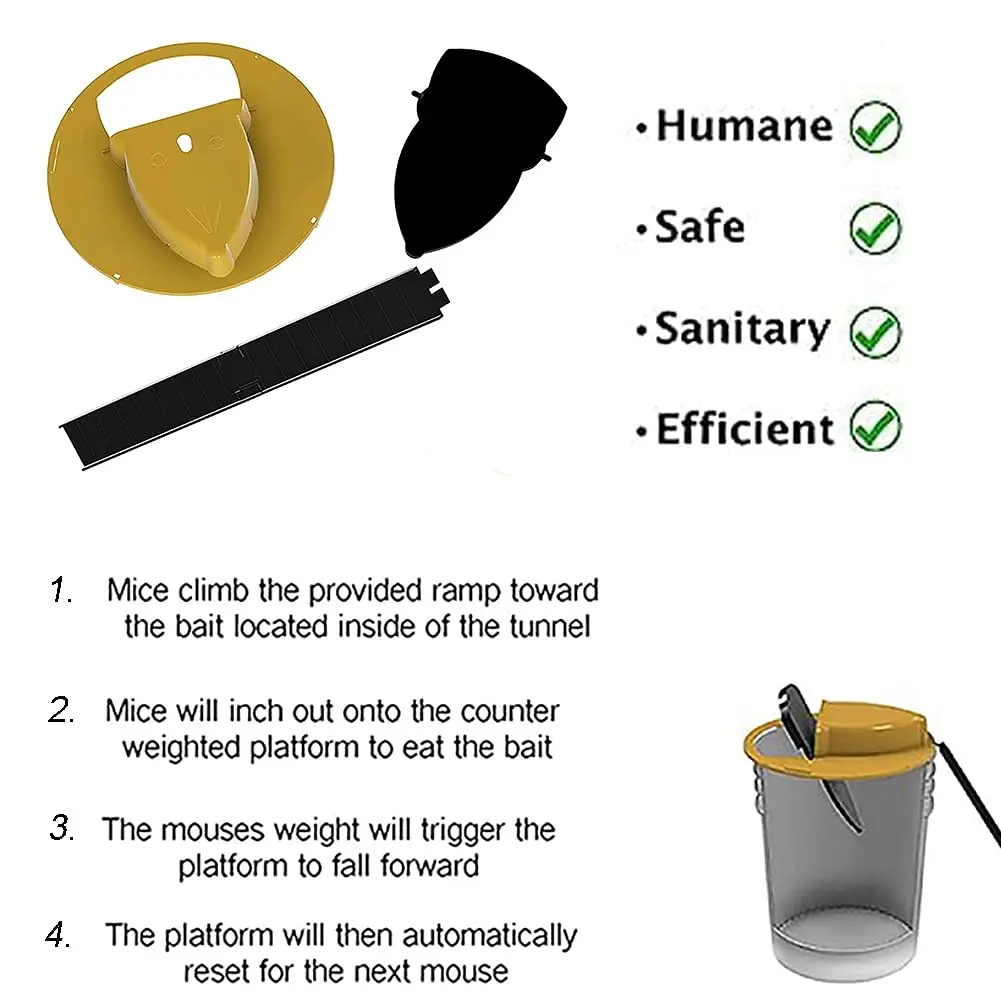 【Легко использовать 】все, что вам нужно сделать, это закрепить его в стандартном ковше размером 5 галлонов и использовать его для ловли крыс и мышей. Больше не обрабатывает одноразовые ловушки, которые часто неэффективны и не гигиеничны.