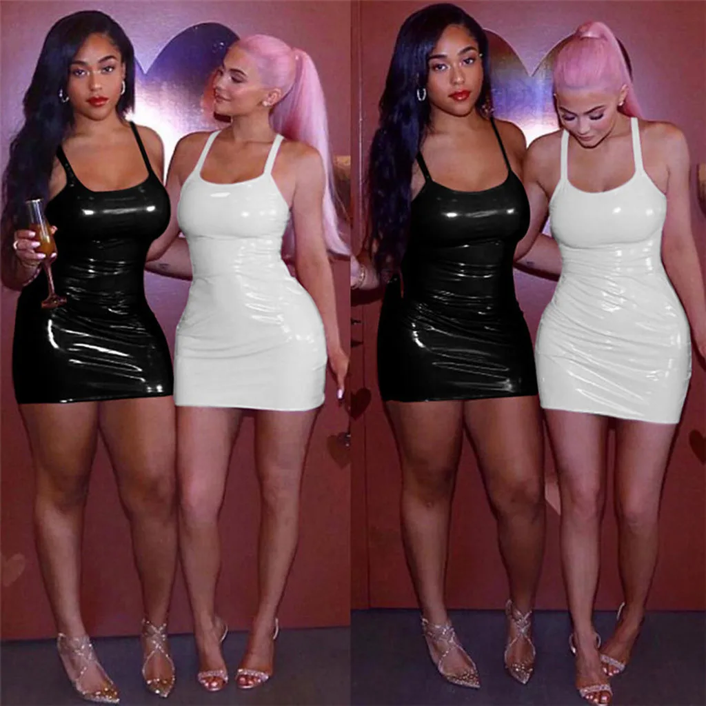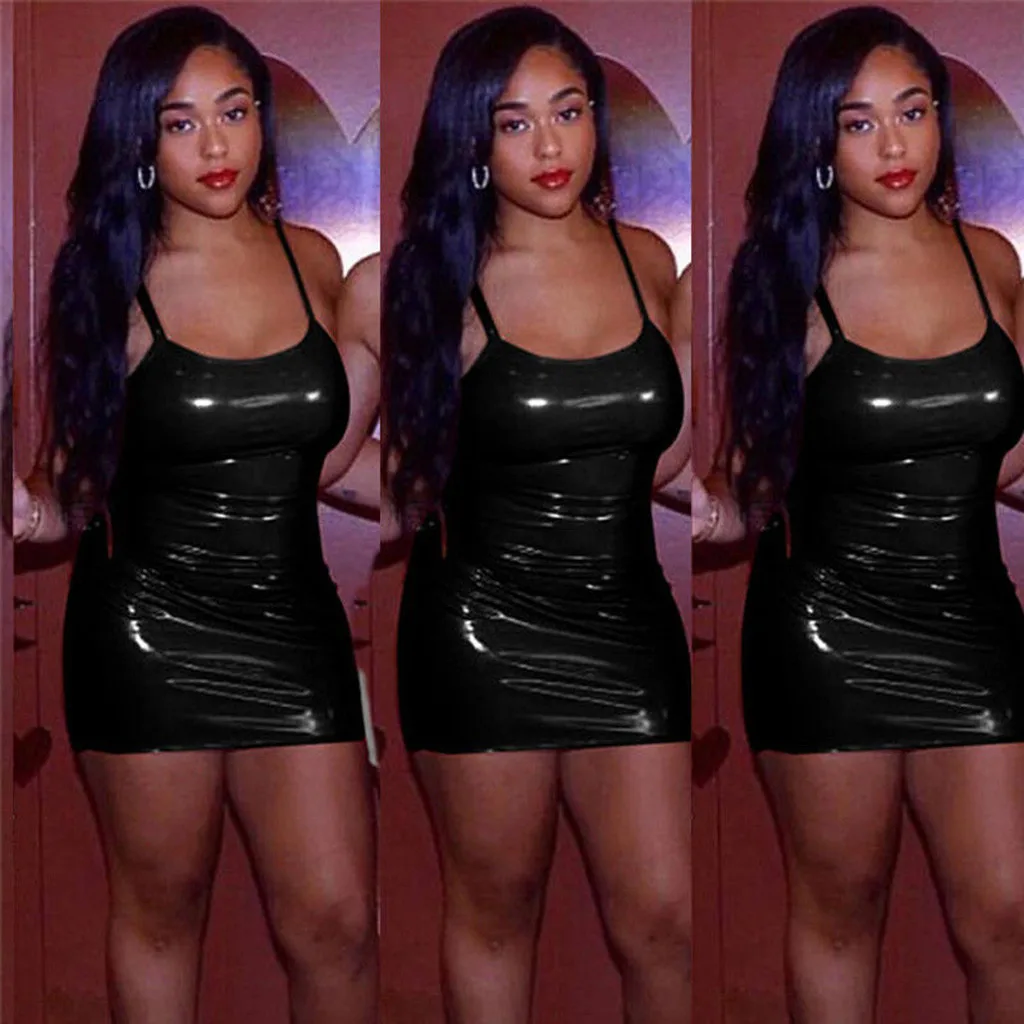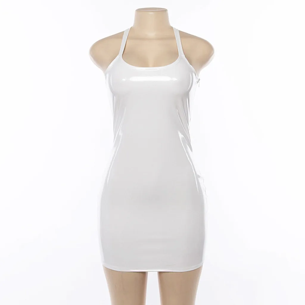 Женское сексуальное однотонное кожаное Wetlook ночное Клубное облегающее Короткое мини платье для вечеринки