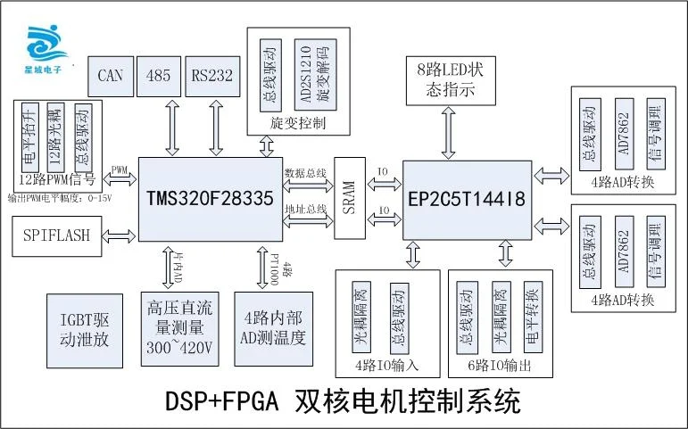 DSP обладает гибкостью программного обеспечения, в то время как FPGA имеет высокую скорость аппаратного обеспечения, которое может удовлетворить требования обработки сложных алгоритмов с точки зрения устройств. Таким образом, структура DSP + FPGA обеспечивает лучшее решение для того, как бороться с связью между аппаратным и программным обеспечением в дизайне. В то же время, Система имеет гибкую структуру обработки и сильную адаптивность к различным алгоритмам, особенно подходит для задач обработки сигналов в реальном времени и случаев управления двигателем высокой мощности.