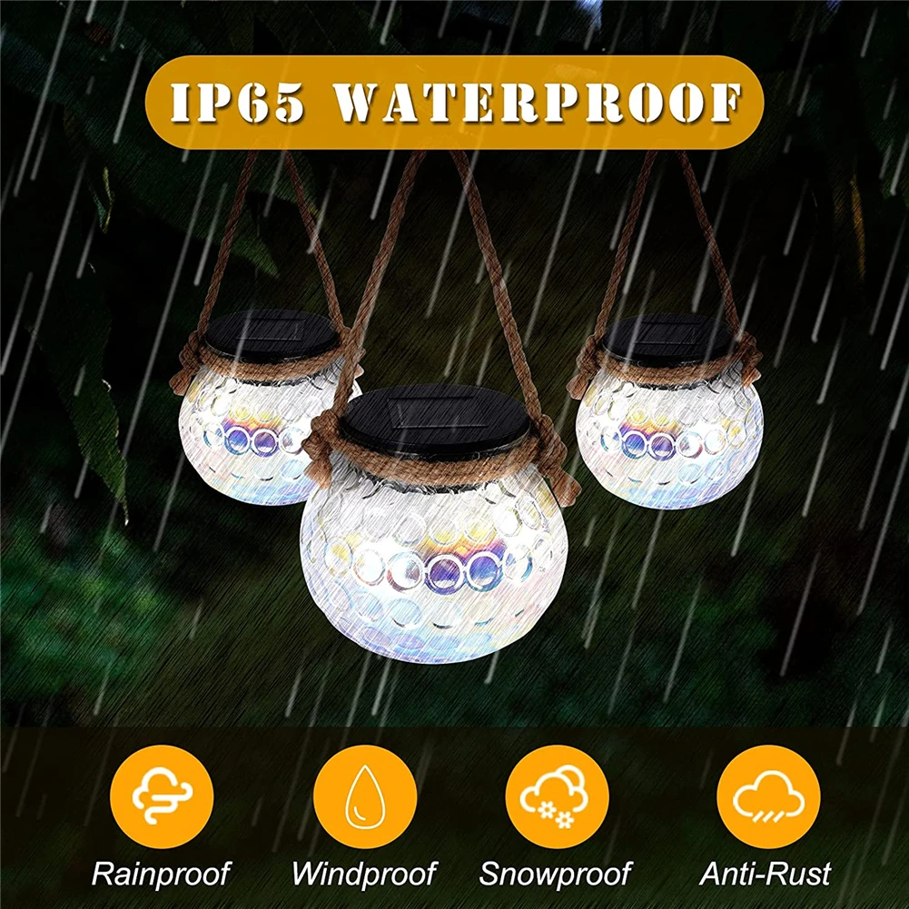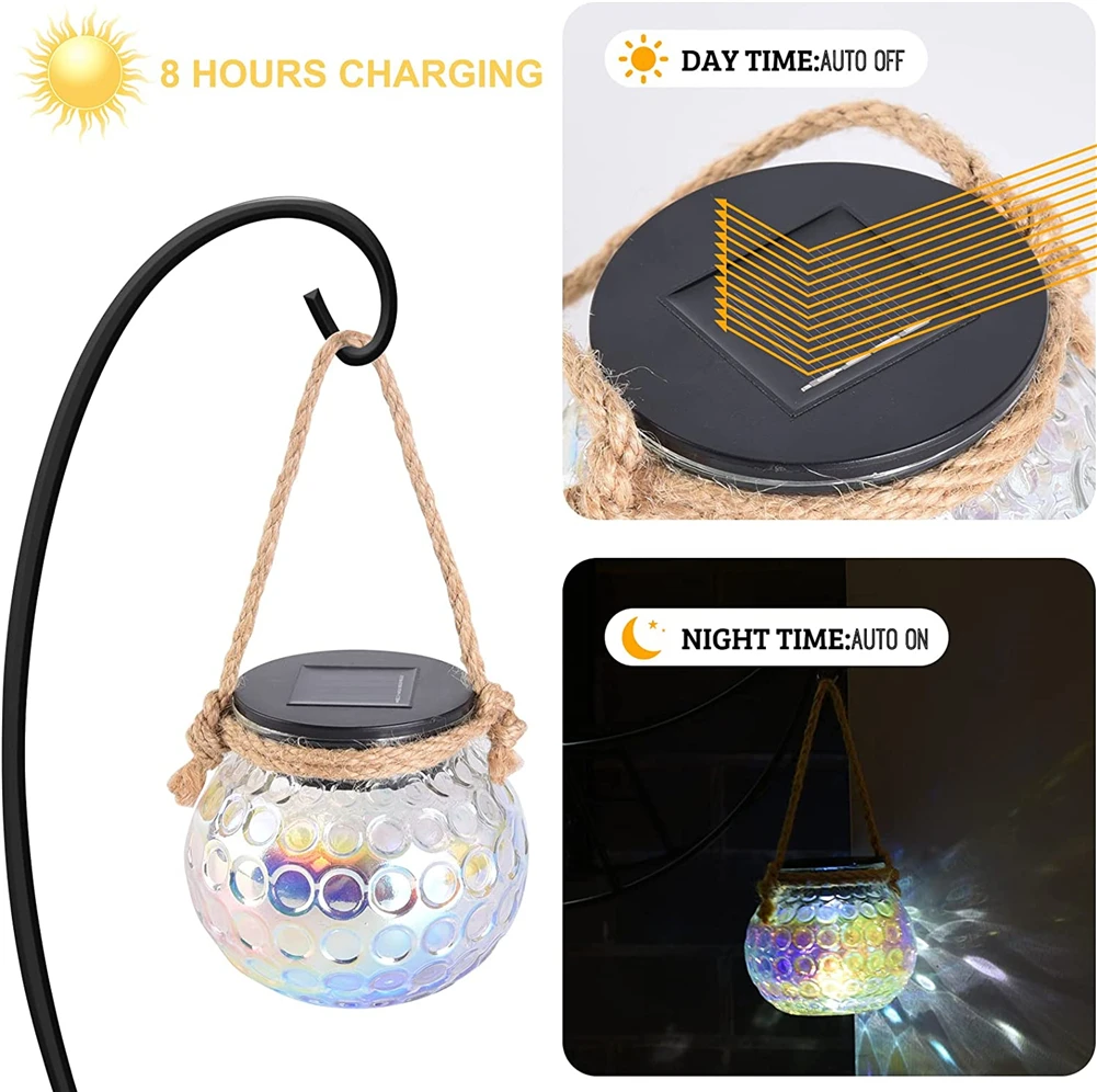Многофункциональный солнечный светильник: вы можете использовать этот стеклянный Солнечный фонарь в качестве украшения для вашего сада, двора, лужайки, патио и забора, И их также можно использовать как красивый солнечный светильник, чтобы осветить ваш путь, внутренний двор.