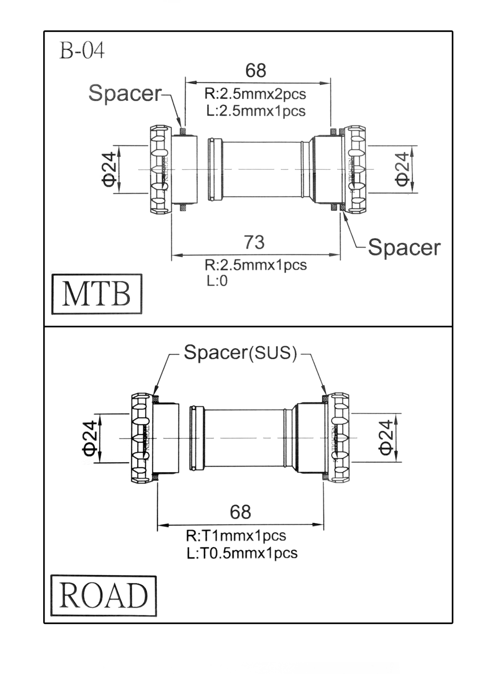 Внешний BSA BB для SHIMANO, 68/73 мм