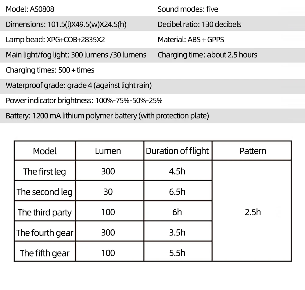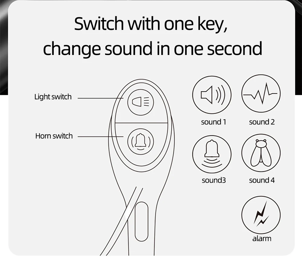 130 децибел, Пять звуковых режимов, одна секунда для переключения звукового сигнала громкий голос является лучшим предупреждением