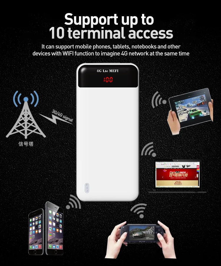 -С небольшим размером, 4G WiFi маршрутизатор будет идеальным выбором для вас на ходу.