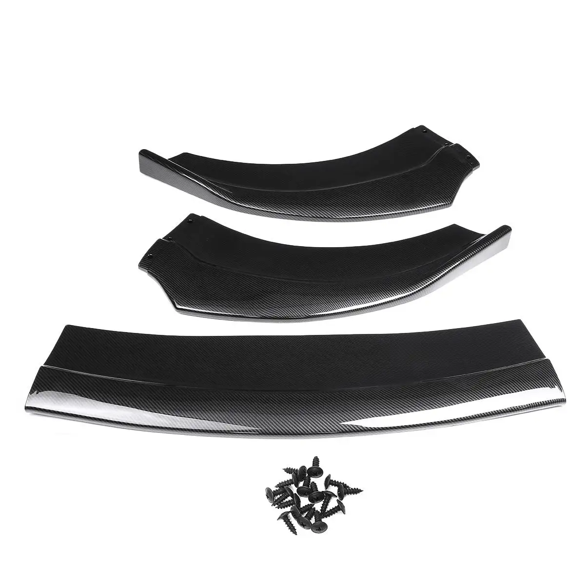 3PCS Carbon Look/Glossy Black Car Front Bumper Splitter Lip Body Kit