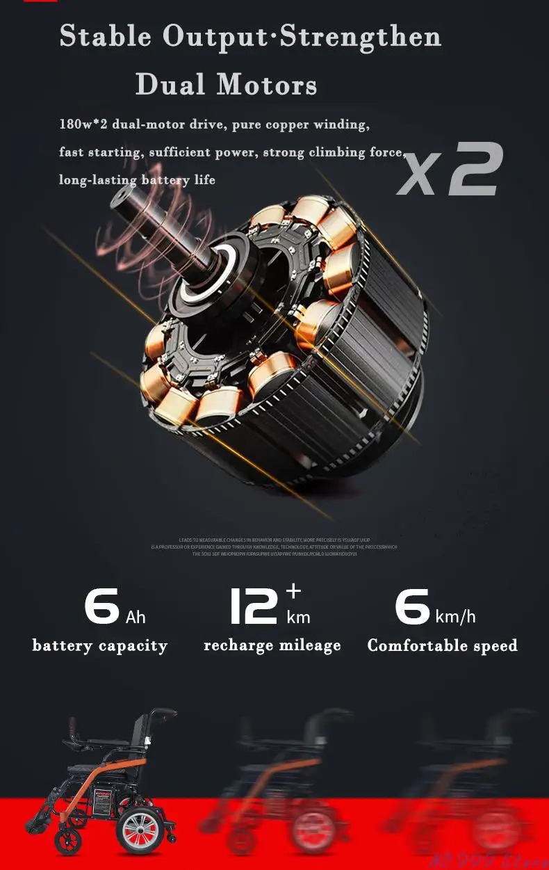 Ультра-светильник литиевой батареи удобный и складной Электрический силовой инвалидной коляске для пожилых людей с ограниченными возможностями