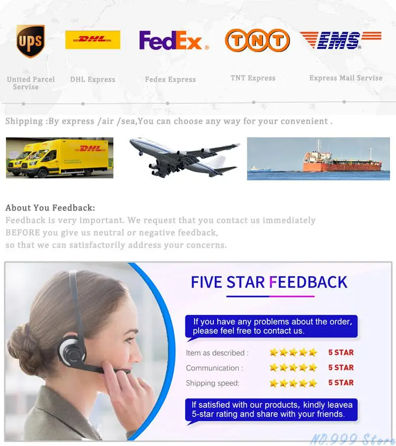 Мы поддерживаем высокие стандарты качества и стремимся к 100% удовлетворенности клиентов! Отзывы очень важны. Мы просим Вас связаться с нами немедленно, прежде чем дать нам нейтральные или отрицательные отзывы, чтобы мы могли удовлетворительно решить ваши проблемы. Невозможно решить проблемы, если мы о них не знаем!
