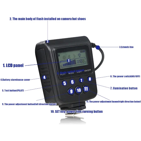 2. Основной корпус вспышки установлен на камеру горячий башмак
