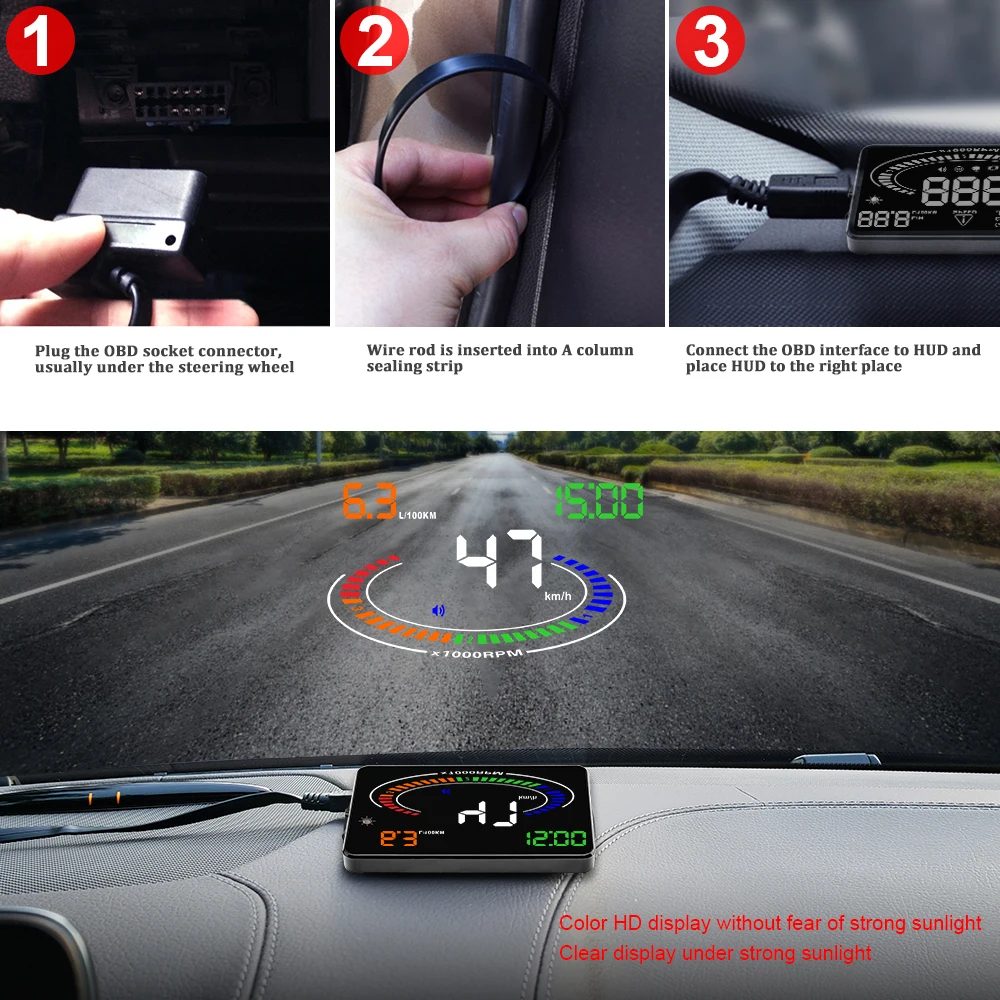 Автомобильный диагностический инструмент OBD2 HUD E300, проектор с цифровым индикатором скорости, охранная сигнализация, температура воды, напряжение