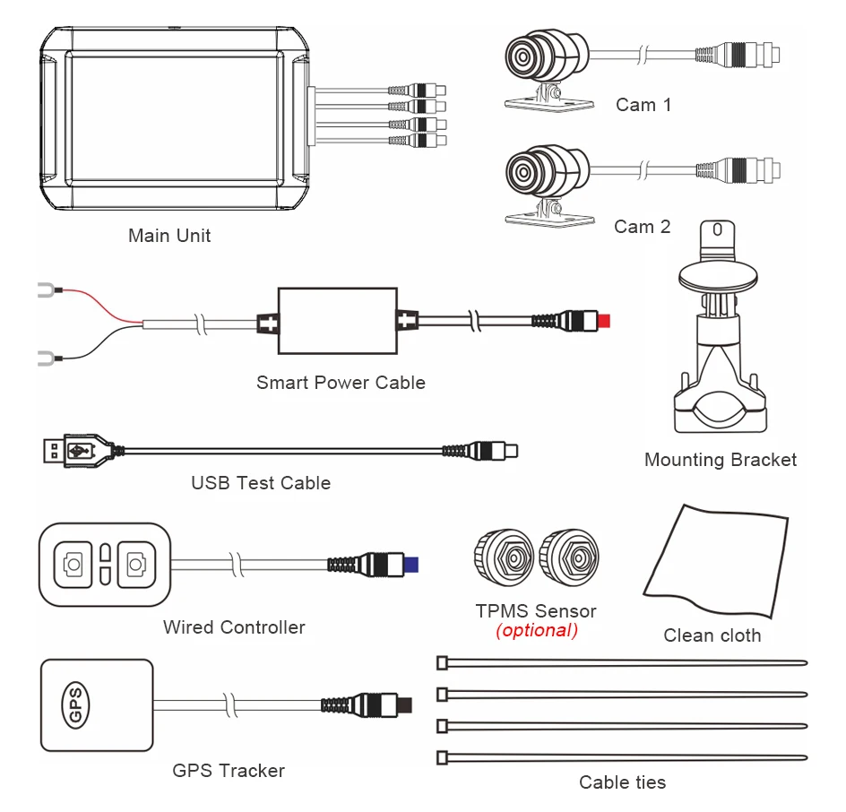 2 канальный отдельно камеры с каждым стандартный 2,0 м кабель-удлинитель для переднего и заднего вида запись. Один на передней и один на задней части вашего велосипеда, который будет записывать все, что происходит перед вами и позади вас в любое время. Идеально подходит для мотоциклов, скутеров, автомобилей, UTV, ATV и любых других транспортных средств.