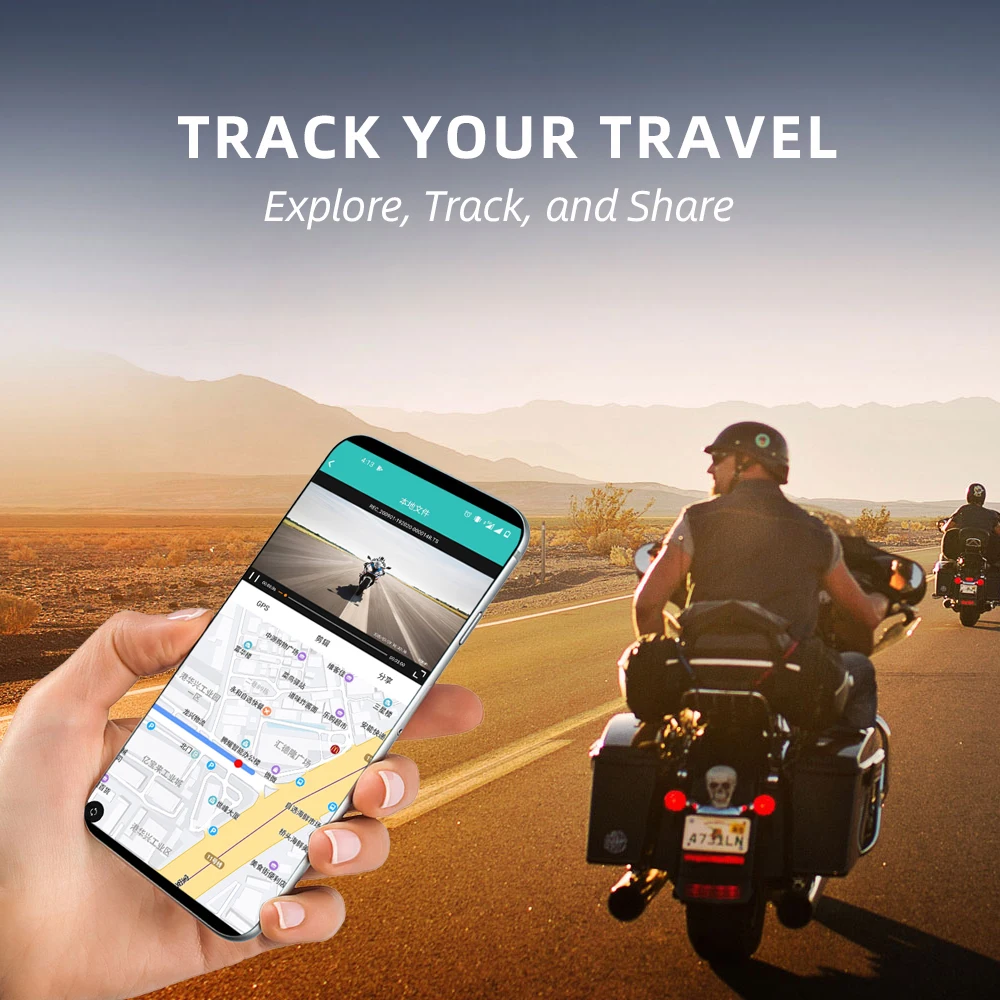 Данные GPS (скорость и местоположение) будут сохранены в каждом видеофайле. Вы можете легко отслеживать ваши поездки через приложение напрямую. И приложение позволяет редактировать видео и делиться лучшими моментами вашей поездки с друзьями.