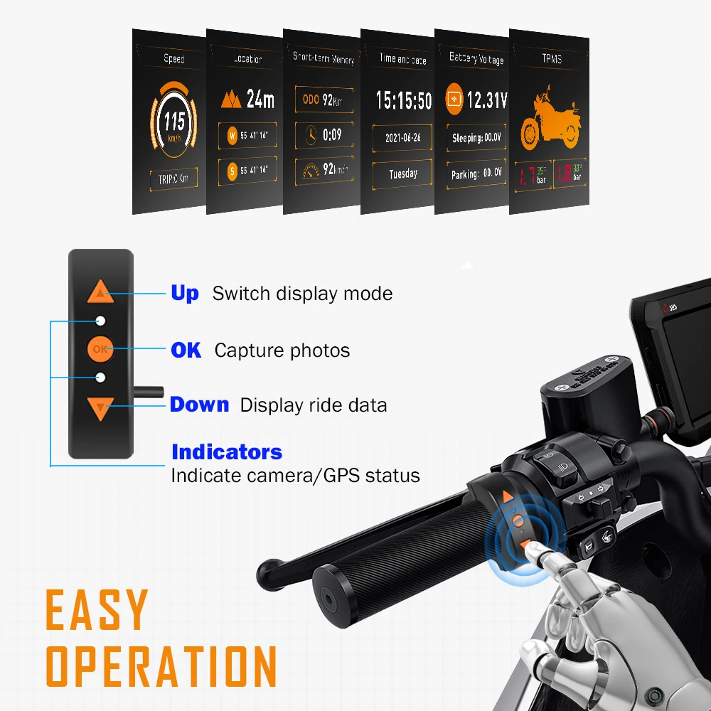 В F9D представляет собой 2-х канальный full HD мотоциклетные видеорегистратор с 4,0 ''большой экран. Вы можете легко установить монитор на руле для проверки заднего вида вашего велосипеда в режиме реального времени на дисплее зеркального изображения (обратное изображение). Благодаря использованию сенсора SONY 307 starvis, он фиксирует каждую деталь даже когда вы едете ночью. Он также добавляет скорость в реальном времени, местоположение, счетчик хода, функцию контроля температуры и TPMS, которая позволяет контролировать здоровье вашего велосипеда во все времена.