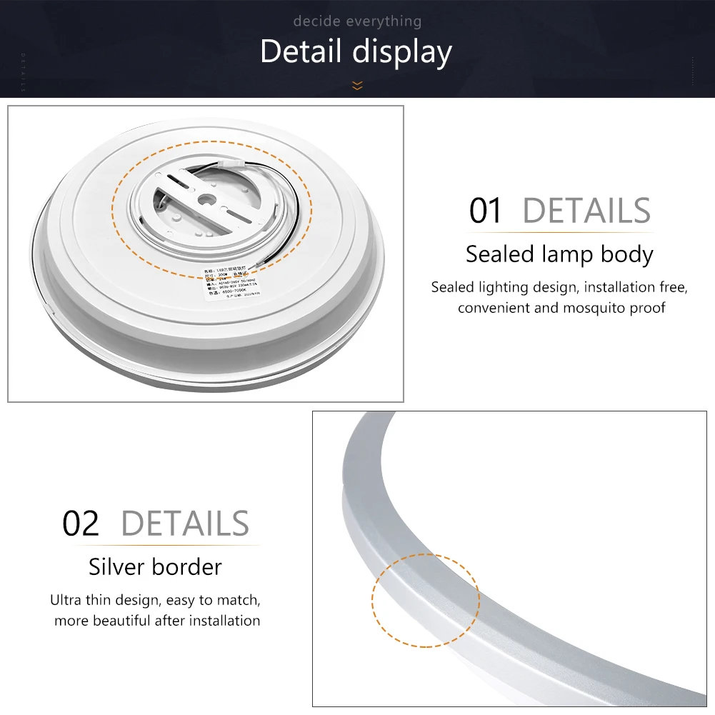 Защитный дизайн для глаз. Низкий синий 2835 Светодиодный чип с оптическим объективом, не мерцающий светильник или нулевые жесткие глазури. Светодиодный потолочный светильник может снизить глаза истощения эффективно вызываемых обычными светильник лампы, для того, чтобы обеспечить вас комфортной, без стресса атмосферу.