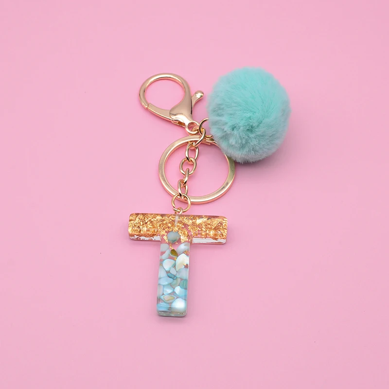 Новинка 2021, 26 букв, брелок для женщин, зеленая смола, искусственный мех, плюшевый шар, брелок для мужчин, брелок для ключей, сумка, кулон, брелок, аксессуары, подарок