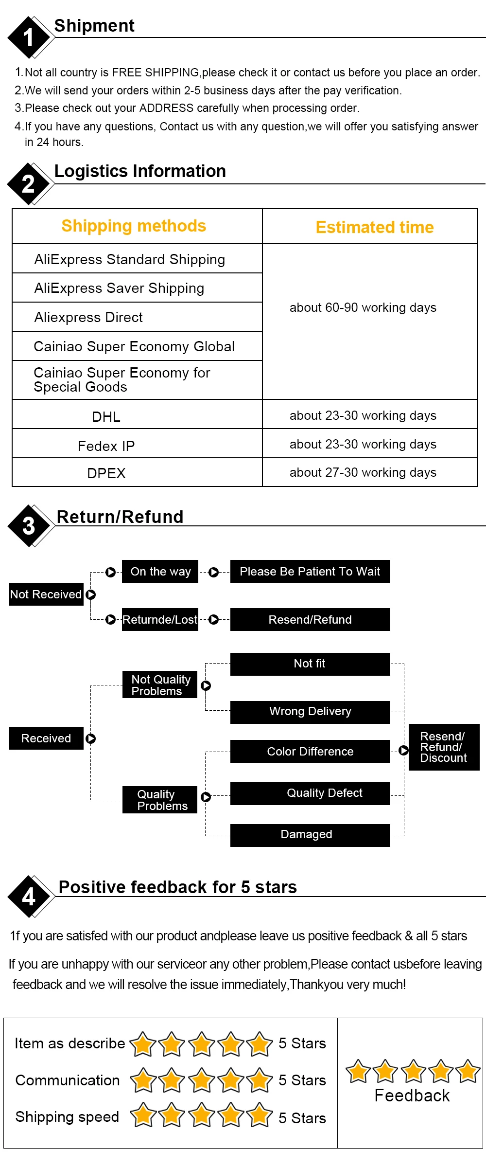 1. If the product is not delivered within the promised delivery time, you can contact us at any time and we will solve the problem for you