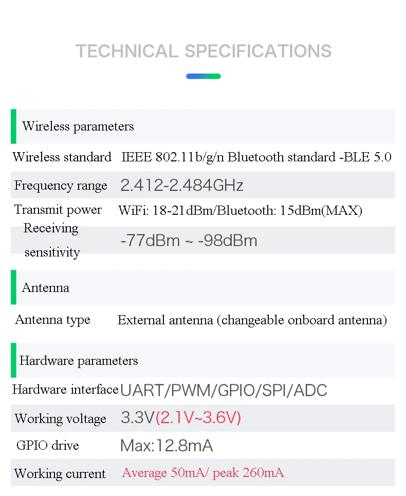 BLE5.0/2,4G, 1T1R WiFi/AP, STA и BLE режимы