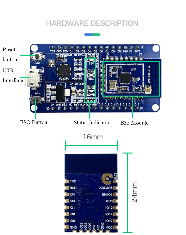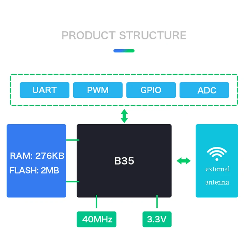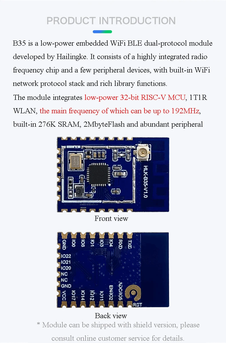 Серийный порт к WiFi Bluetooth двухрежимный модуль B35 маленький размер, низкое энергопотребление, удаленная Прозрачная передача AP/STA/BLE5.0