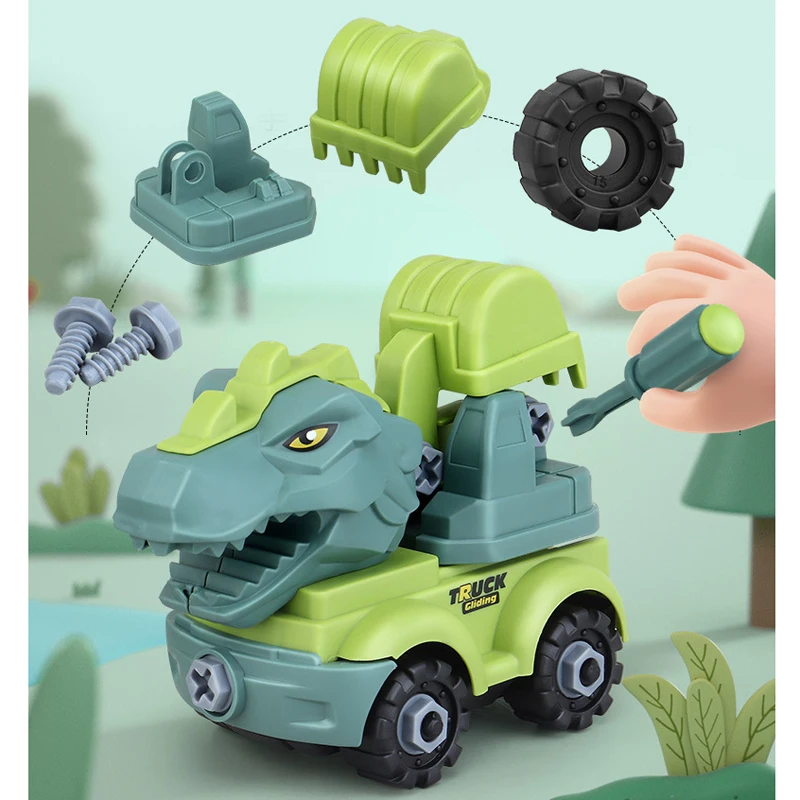Съемный инерционный динозавр инженерный автомобиль сборка автомобиля экскаватор грузовик DIY Развивающие игрушки для детей мальчиков Детский подарок