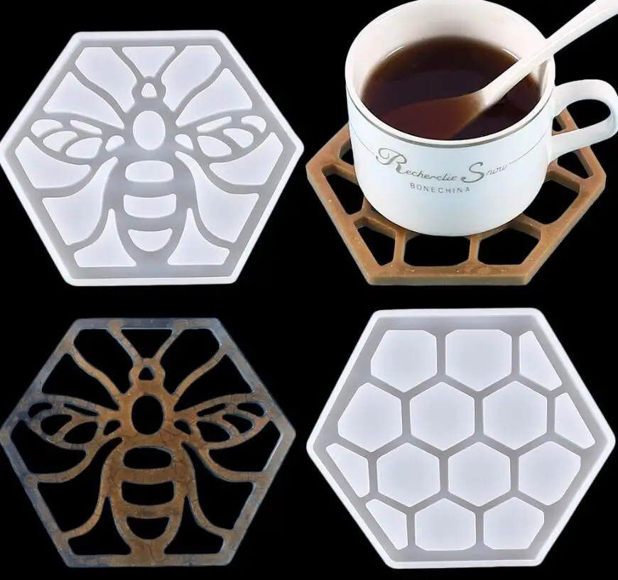 DIY сотовые пчелы горки прессформы кристаллические эпоксидные формы шестиугольные соты горки декоративные смолы силиконовые формы чашки мат плесень