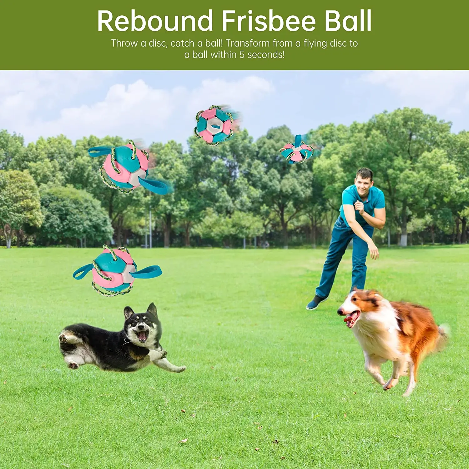 【Rebound Frisbee Ball】: бросьте диск, поймать мяч! Трансформируется из летающего диска в шар в течение 5 секунд! Игрушка может быть раздавлена с мяча, чтобы стать Фрисби, бросайте игрушку, и Фрисби будет прыгать обратно в сферы, когда она приземлится. Этот продукт легко бросить далеко, высокий и устойчивый. Взаимодействие между владельцем и собакой может улучшить вентиляцию энергии собаки и выпустить умственное давление собаки