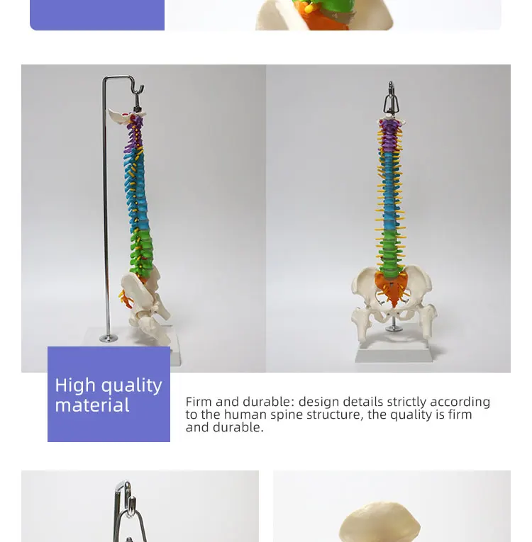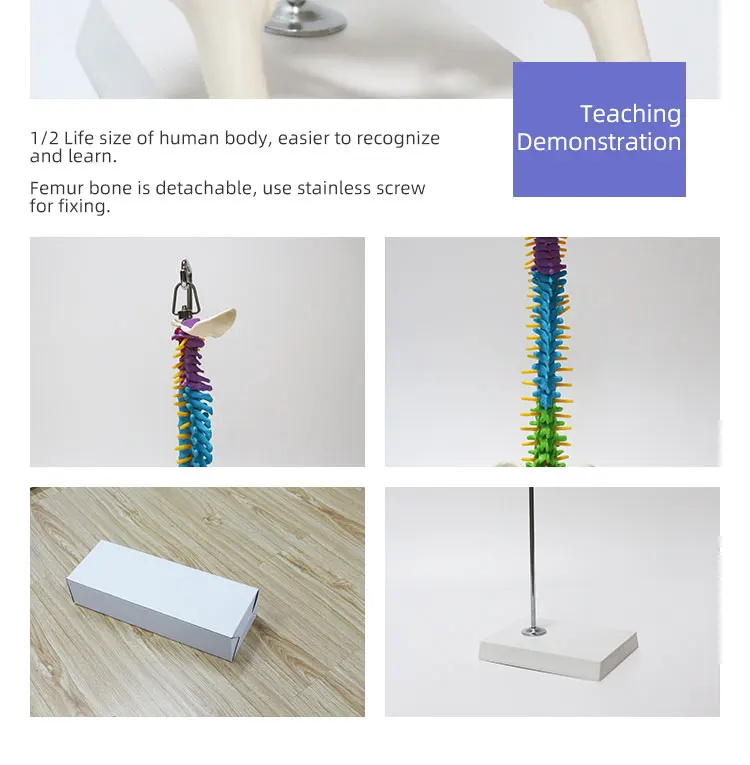 Анатомическая модель ПВХ материал 45 см Цветовая дифференциация человеческого гибкого позвоночника с двумя Femur
