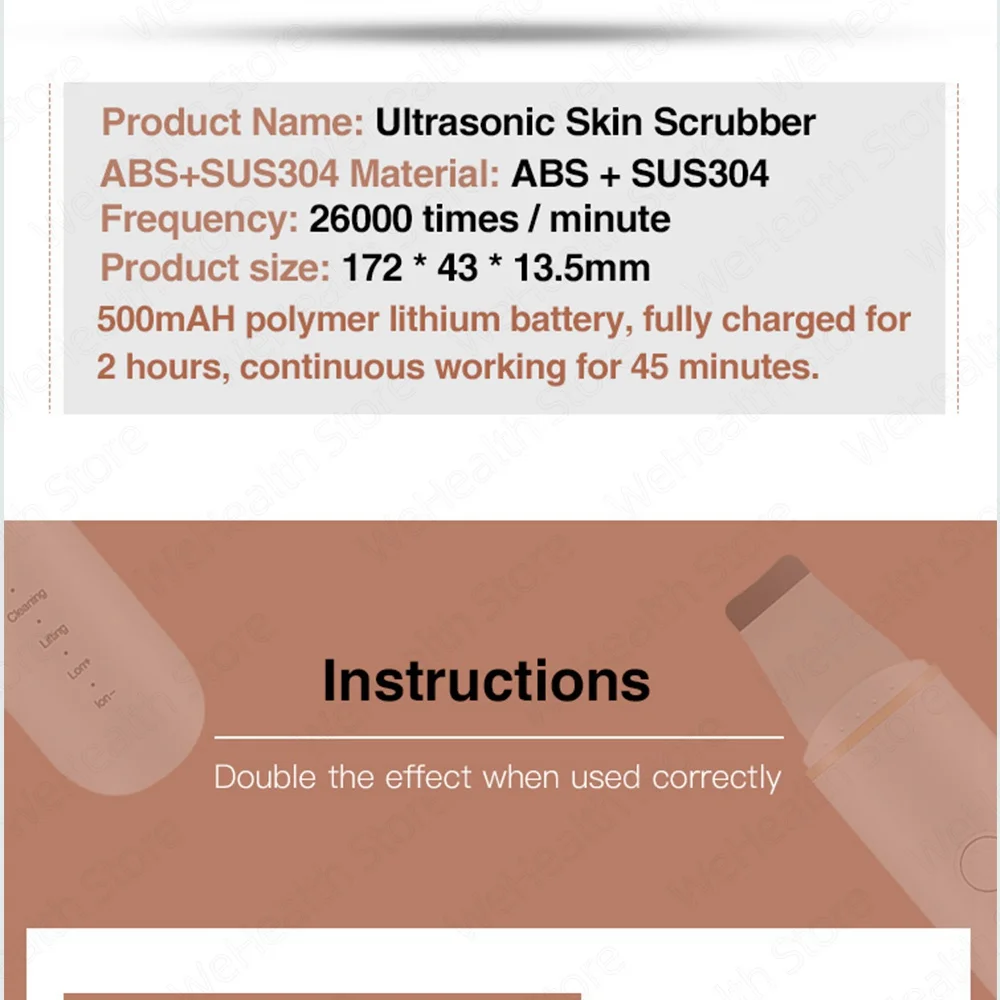 1. Глубокое очищение: способ 45 градусного угла для ускорения метаболизма клеток эпидермики и обновления его нормального уровня обновления, повышает выпадение пожилых и нерегулярных аберрантных клеток, смягчает кератин, отрегулируйте эпидермические клетки, восстановив эластичность кожи и обратившись к твердой, гладкой и нежной коже. 2. Лидирующий в питании и активации кожи путем принятия ультразвуковой вибрации и тепидного эффекта, он может способствовать циркуляции крови внутри дермы, ускоряет лимфатический возврат, токсин разряда, который накапливается в более глубокой коже и устраняет мертвые клетки, чтобы избежать чрезмерного скопления клеток корнеозного слоя, таким образом, чтобы вода и питание быстро переносились, Улучшает проницаемость клеток, укрепляет уход за кожей, улучшает увлажнение кожи.