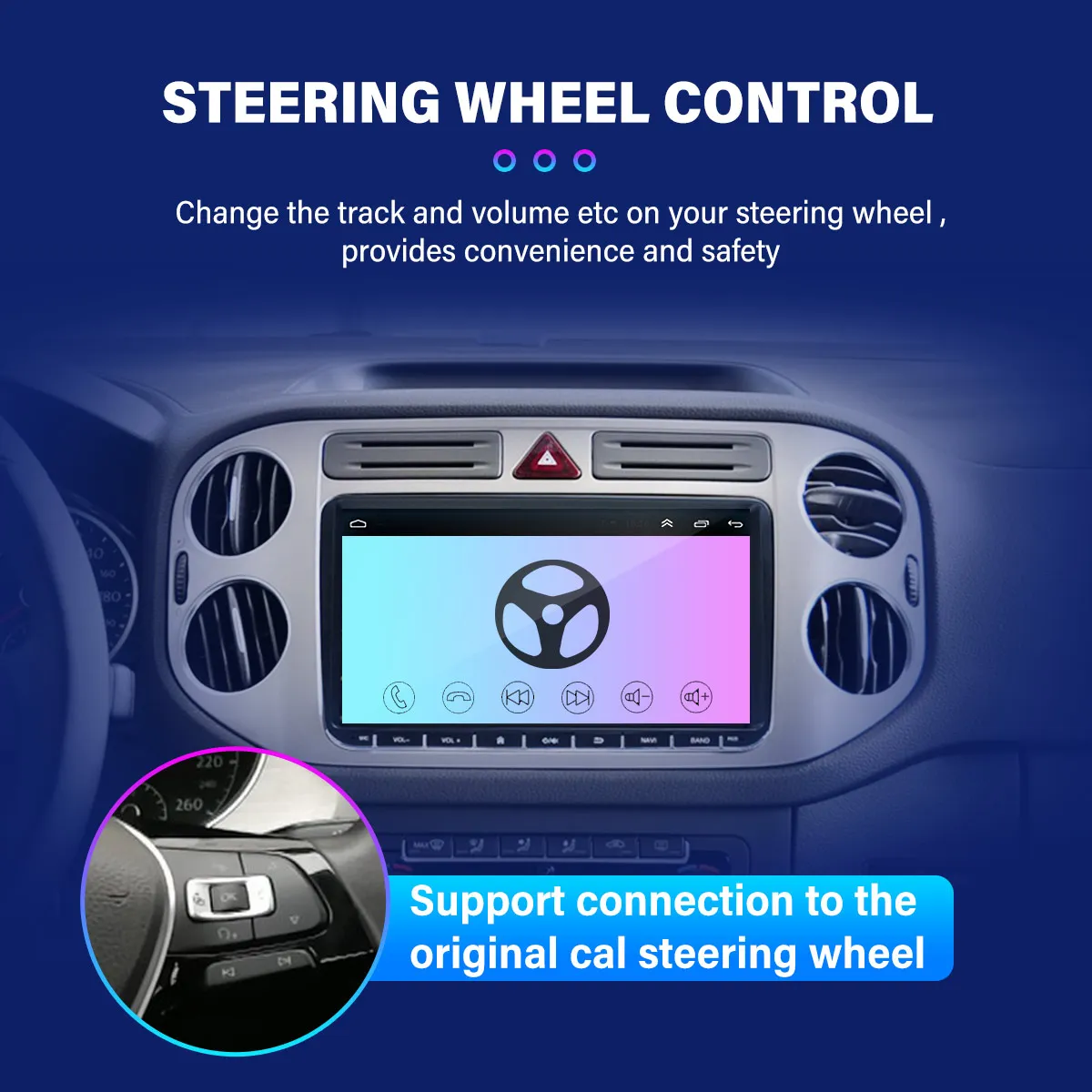 5. Управление рулевым колесом: Поддержка оригинальной кнопки рулевого колеса автомобиля, с помощью которой вы можете управлять функциями, которые вам нужны, через рулевое колесо, что более удобно