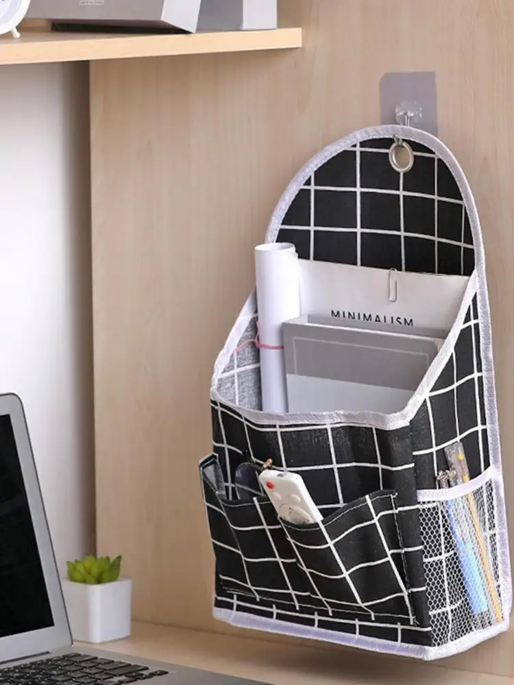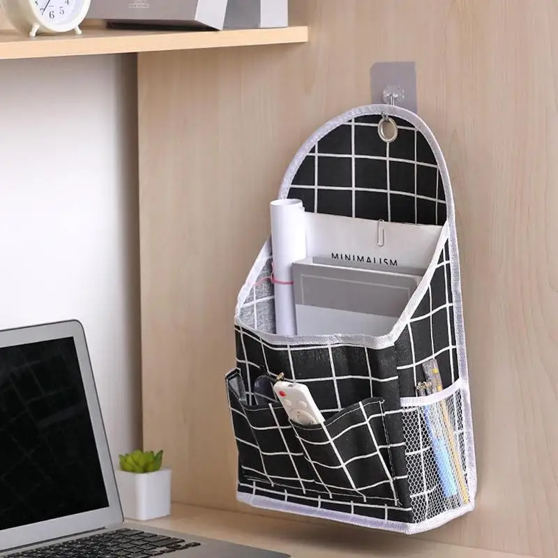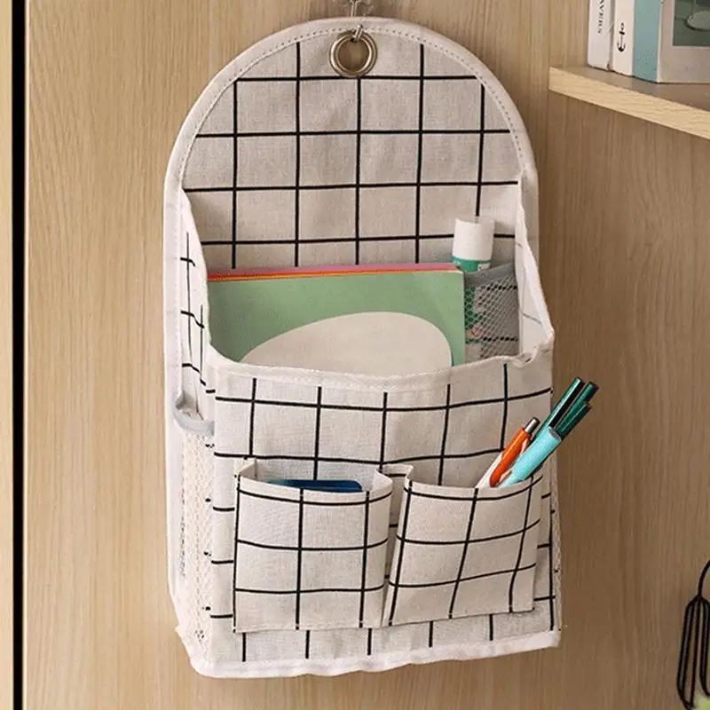 Purpose: Split cotton and linen wall-mounted storage bag with transparent hooks, which can be hung anywhere in any scene, double front pockets, mesh bags on both sides, convenient storage and access, waterproof and moisture-proof.