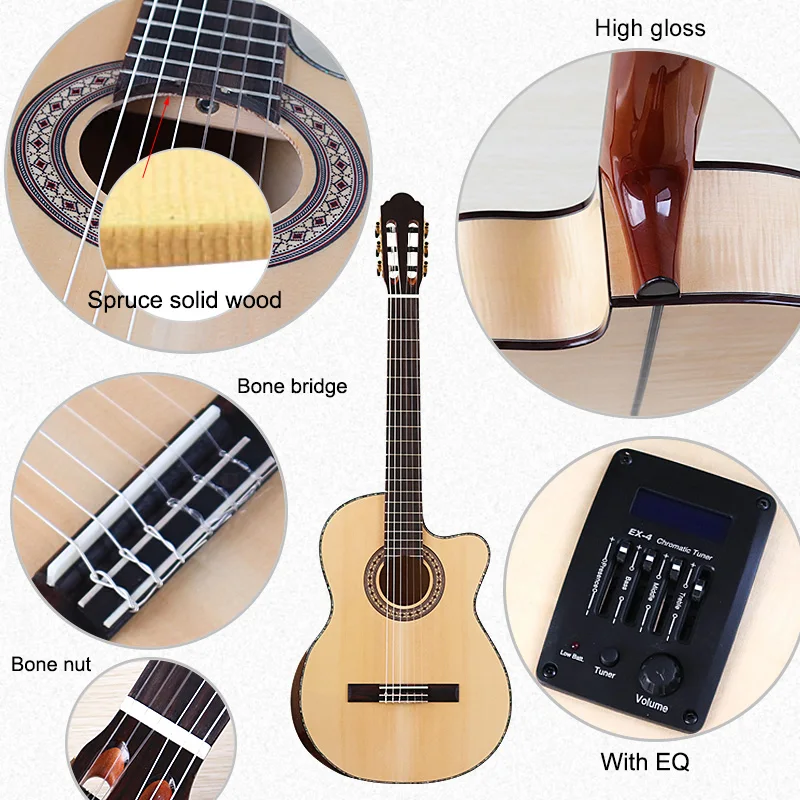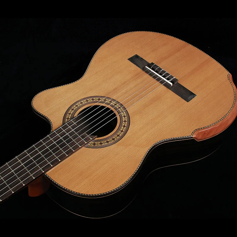 39 дюймов высокоглянцевая твердая красная кедровая Классическая электрогитара 6 струн 19F Классическая гитара натуральный цвет с подлокотником костяная гайка