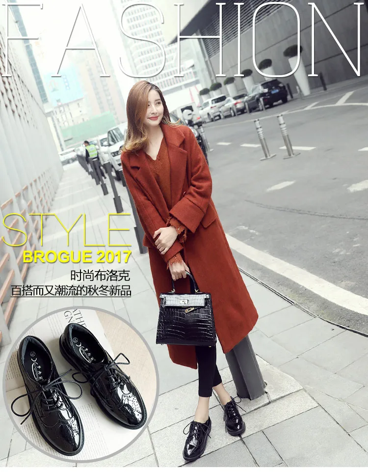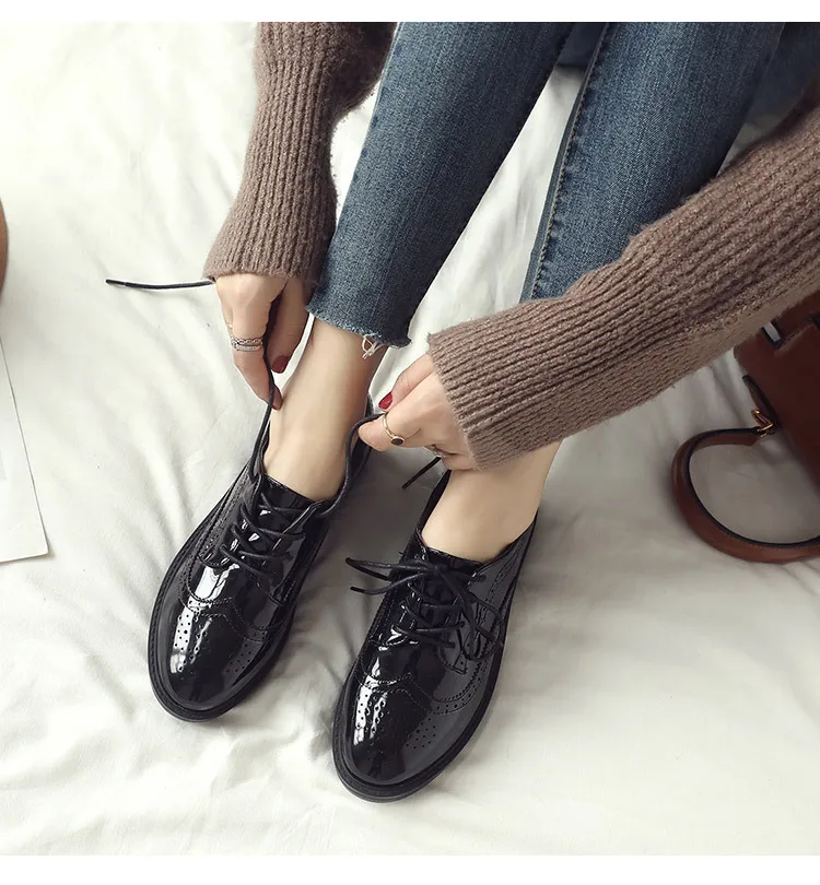 Стиль: модные блестящие кожаные женские ботинки-лоферы на плоской подошве