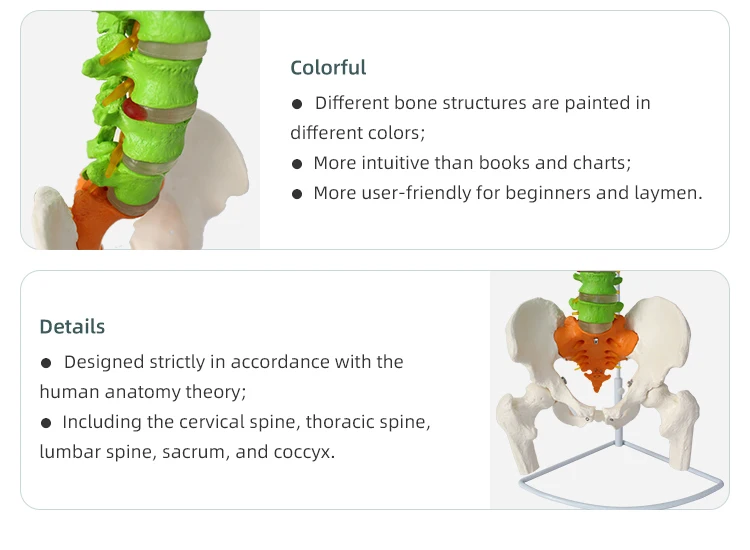 PVC Material 85cm Color Differentiation Human Flexible Spine Bone With Two Femur Teaching Tools Anatomy Model