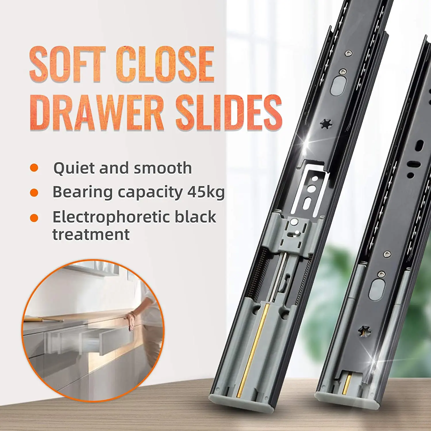 Мягкая/самозакрывающаяся функция: использование заслонки с двумя пружинами и сердечником из чистой меди и шарикоподшипника, плавное нажатие и тяга, что делает ваш ящик автоматически медленно, бесшумно и без шума.