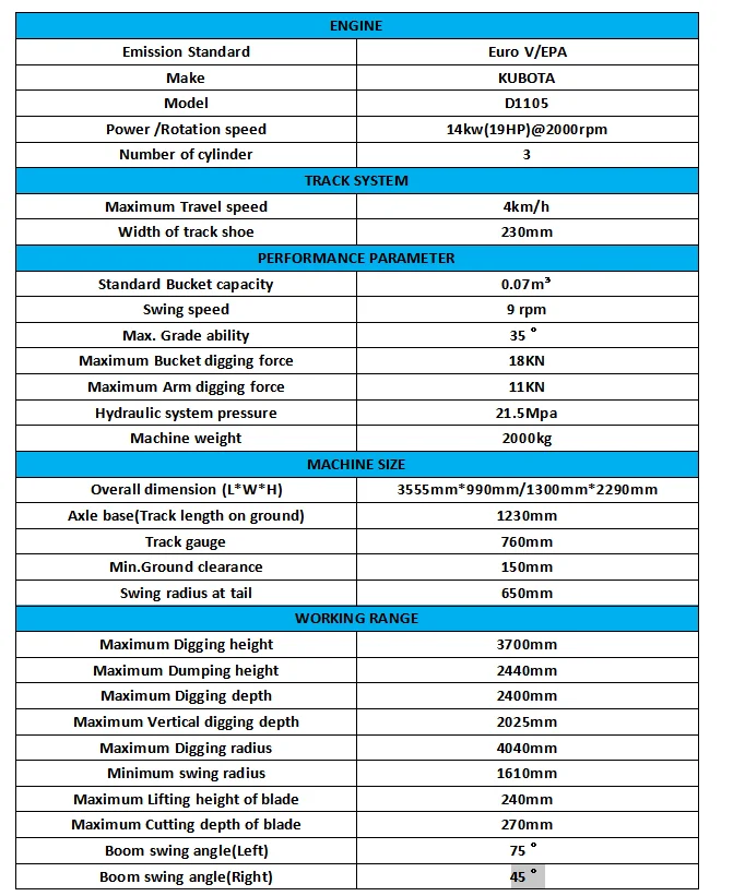 6. У нас также есть 0,8 тонны, 1 тонна, 1,6 тонн, 1,8 тонн, 2 тонны, 2,2 тонны и 3.5ton мини-экскаватор для вас слишком выбрать!