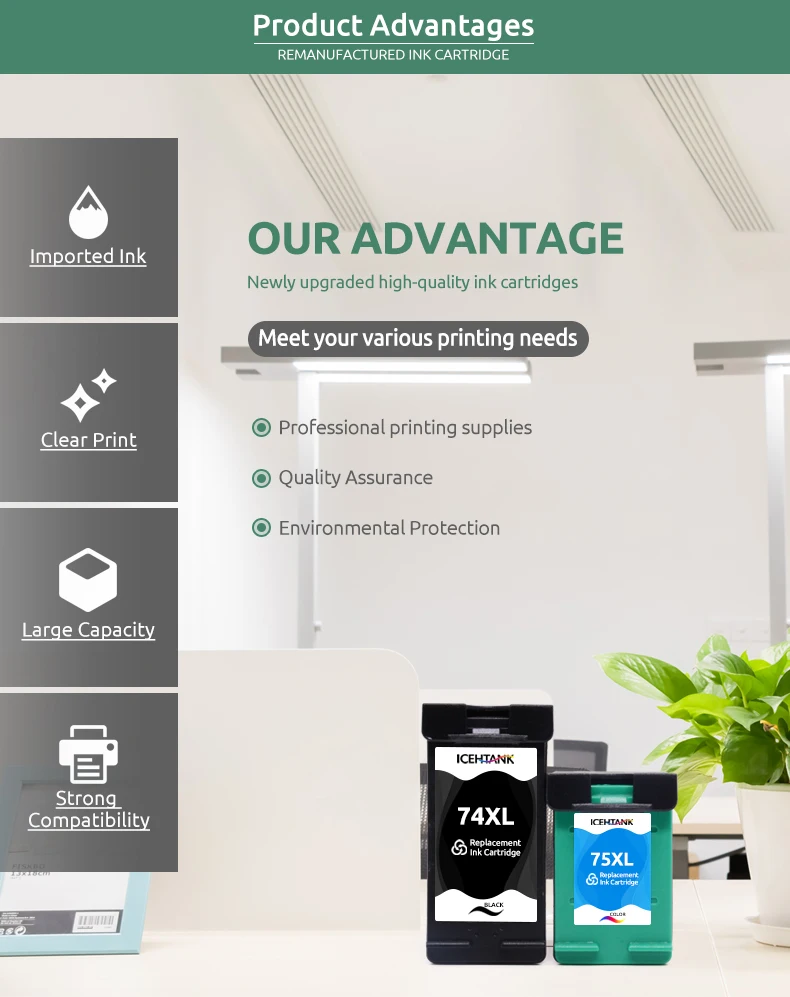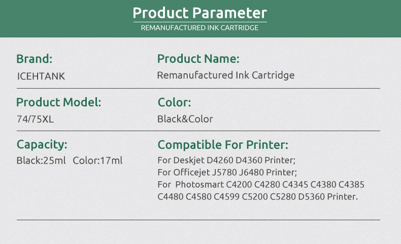 Сменный чернильный картридж Icehtank 74 75 XL для HP 74xl 75XL для hp Photosmart C4200 C4280 C4345 C4380 C4385 C4480 J5780 J6480