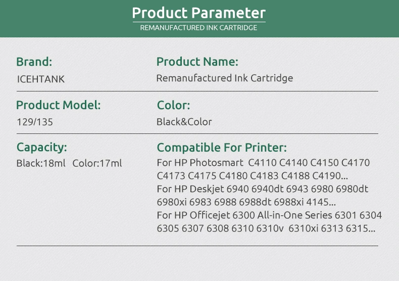 129/135XLCartridge; Если ваша старая или оригинальная модель картриджа не 129 135 или 129/135XL, свяжитесь с нами, мы