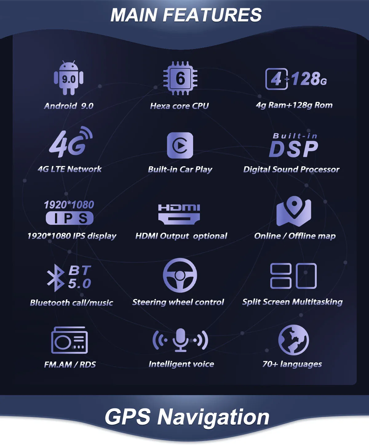 4. Поддерживает Apple carplay/Android Auto/HDMI выход/DSP.