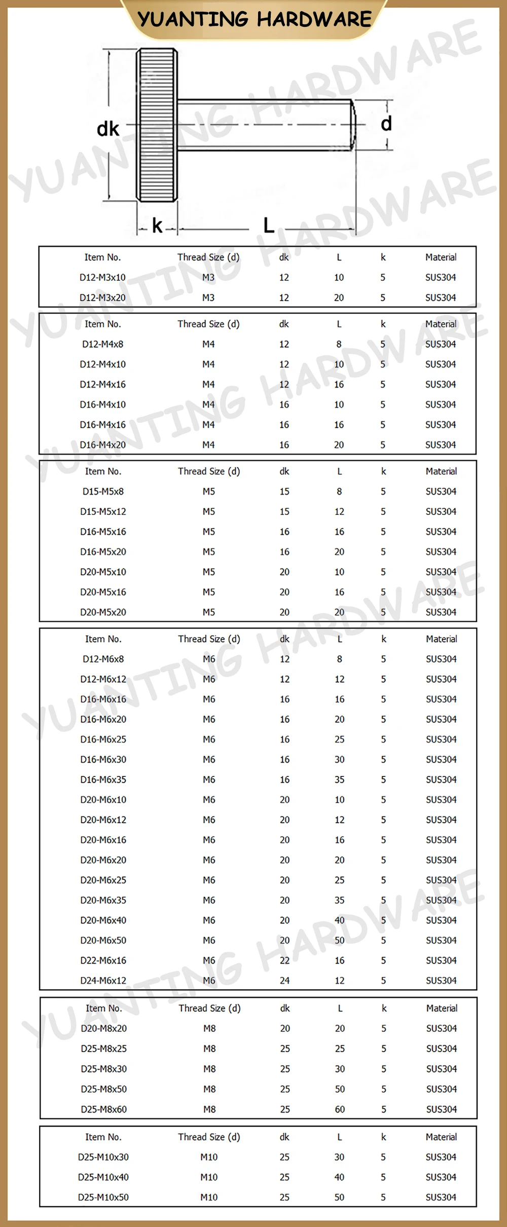 1 шт. ~ 5 шт. GB835 DIN653 M3 ~ M6 SUS304 винты из нержавеющей стали с выкатным накатом для большого пальца ручной затяжки Шурупы для большого пальца толщина головки 5 мм