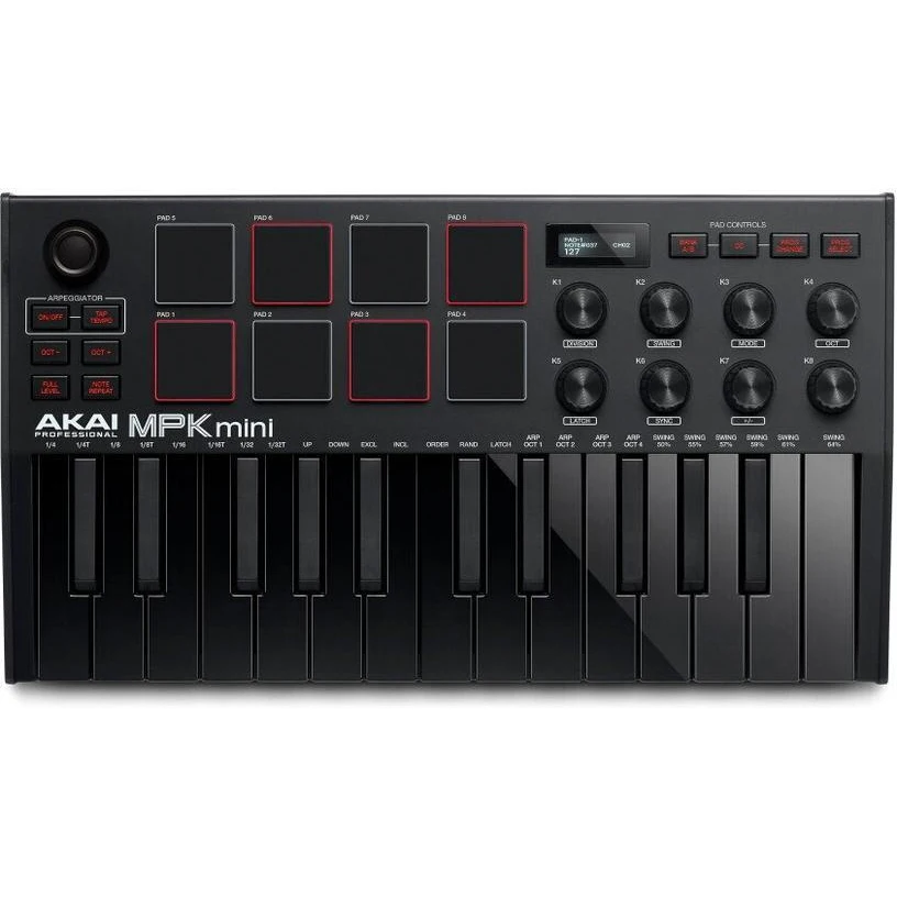 Akai MPK Mini 3 - отличный контроллер, который можно взять с собой в поездку и концерт. MPK Mini 3 оснащена джойстиком для большого пальца, с помощью которого вы можете управлять параметрами высоты тона / модуляции. Функциональность Plug and Play гарантирует, что MPK Mini 3 будет немедленно доступен для вас, а новый OLED-дисплей предоставляет визуальную информацию о громкости MIDI и информации CC.