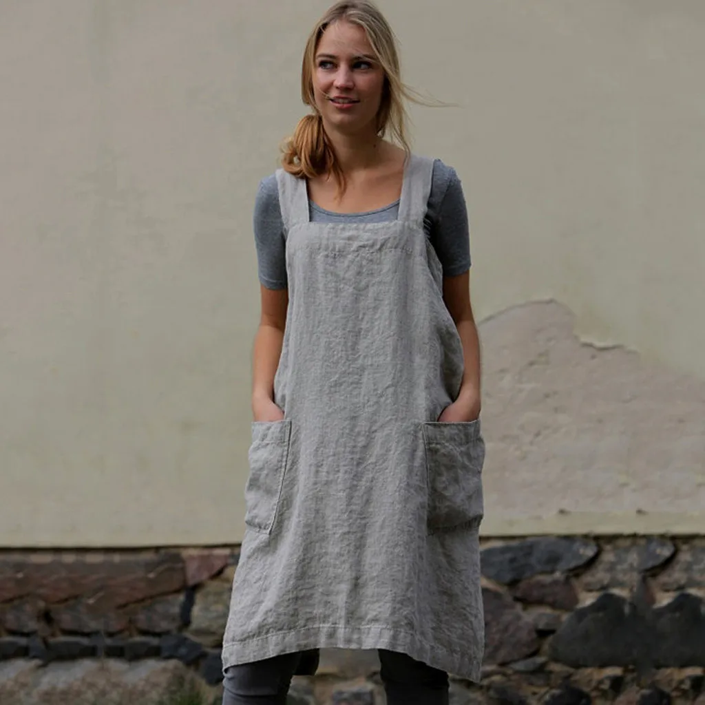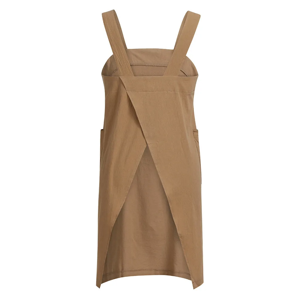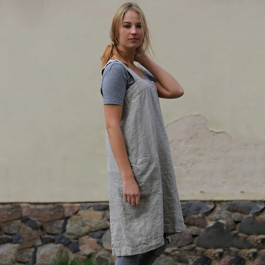 Что вы получаете:1 шт.Женское хлопковое льняное платье с квадратным перекрещивающимся фартуком для садовой работы