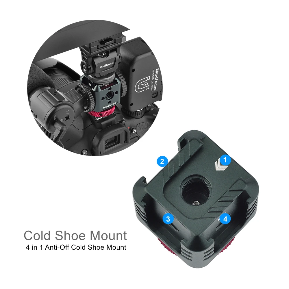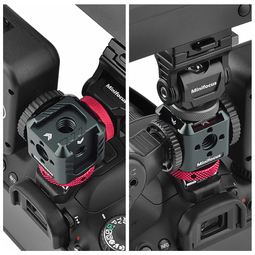 【 4 в 1 крепление для холодного башма】 3 боковых холодных башмака + Верхнее Крепление для холодного башмака, Поддержка крепления микрофона, вспышки, светодиодный светильник, монитор или другие аксессуары.