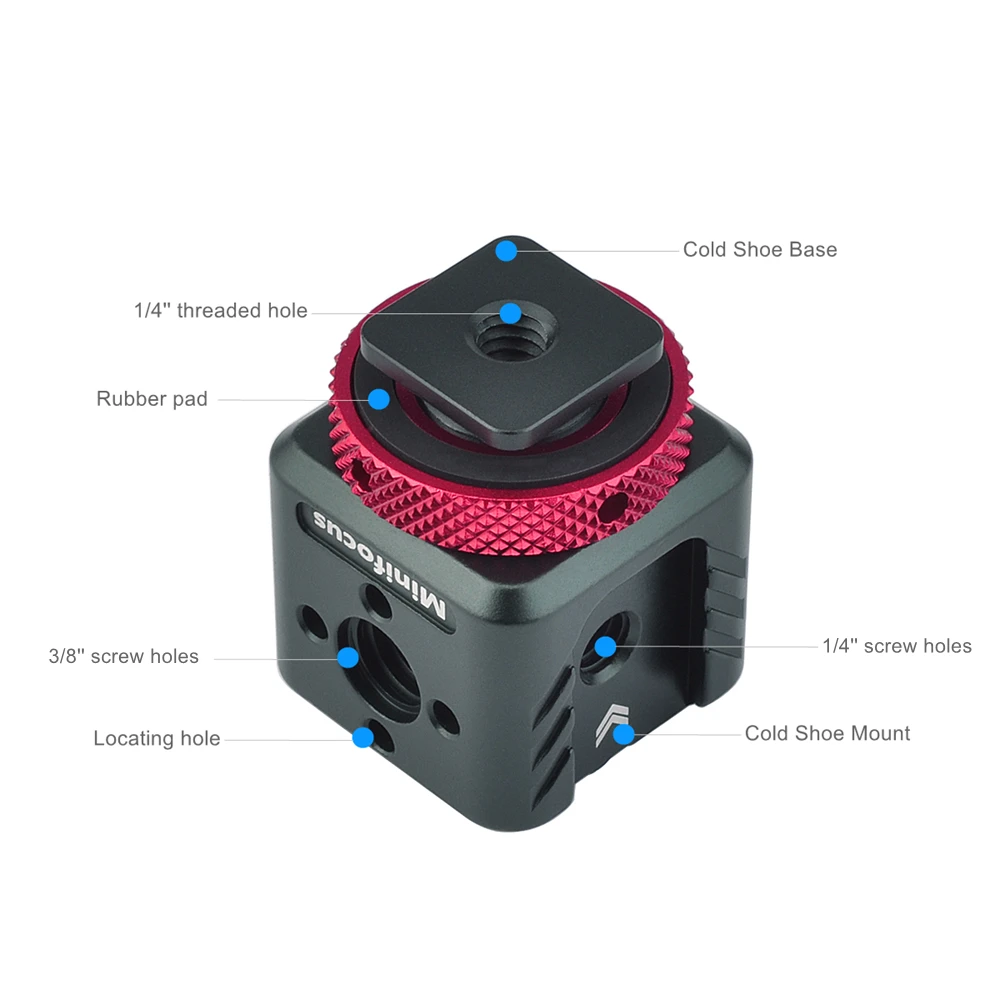 【Расширение 1/4 ''и 3/8'' резьбовое отверстие 】 3 стороны с резьбовым отверстием 1/4 '', другие 2 стороны с резьбовыми отверстиями 3/8'' (передняя сторона с отверстием для поиска Arri), поставляется с 2 шт. 3/8 ''до 1/4'' адаптер переменного тока, может быть подключение к какие-нибудь аксессуары, как, например, шарнирное сочлененное крепление.