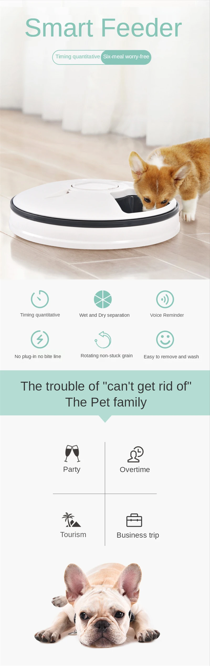 Съемный пищевой бак, который легко моется. И основание стабильное и анти-скольжение, которое может лучше защитить ваших питомцев.