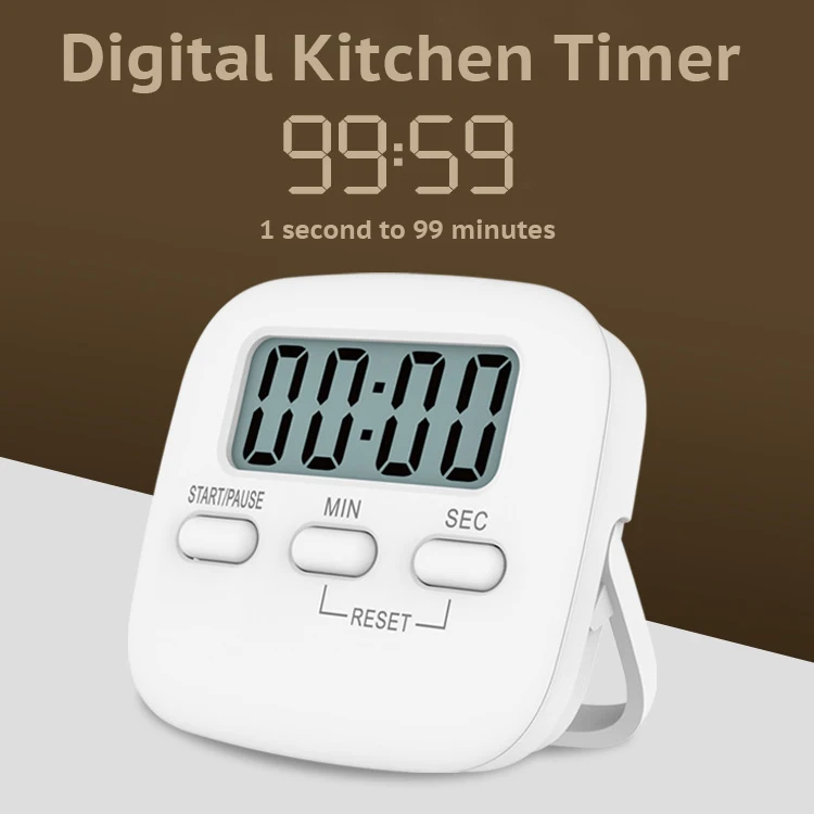 【Подсчитывает и обратный отсчет 】-Цифровые кухонные часы с таймером могут подсчитывать и отсчитывать в диапазоне от 1 секунды до 99 мин, что делает его идеальным таймером для различных видов деятельности, таких как приготовление пищи, упражнения, тренировки в тренажерном зале, домашнее задание, барбекю, выпечка, спорт, игры, Детские мероприятия и встречи.
