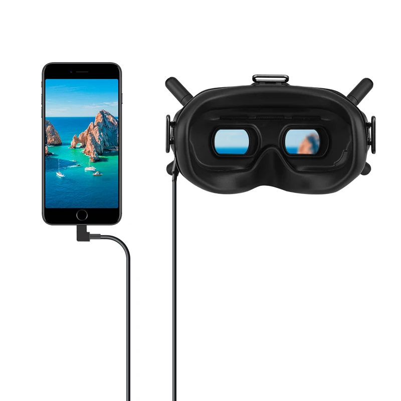 1. Подключите очки FPV V2 на мобильный телефон или планшет через USB Type-C/кабель IOS/Интерфейс Micro-USB для просмотра экрана полета в режиме реального времени,