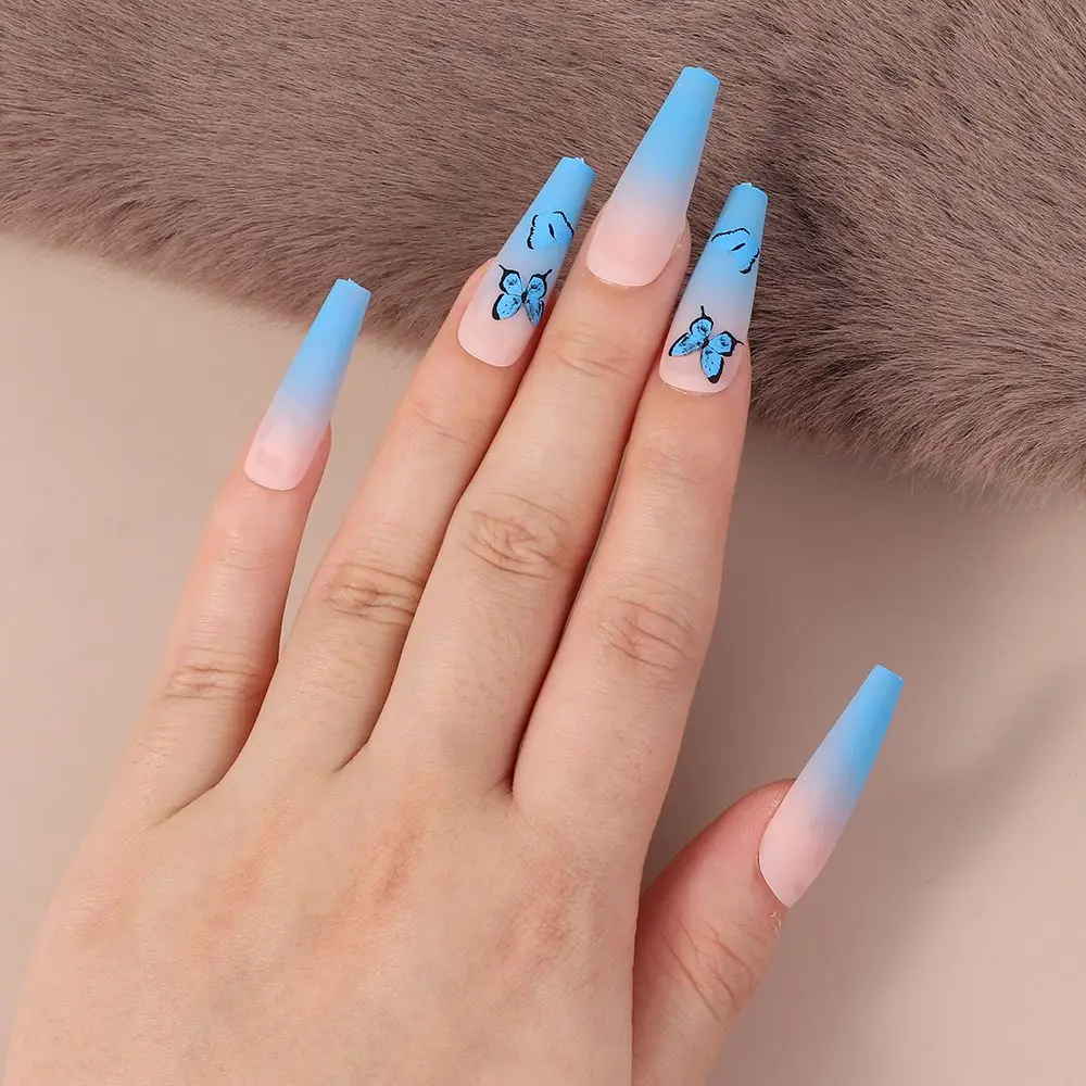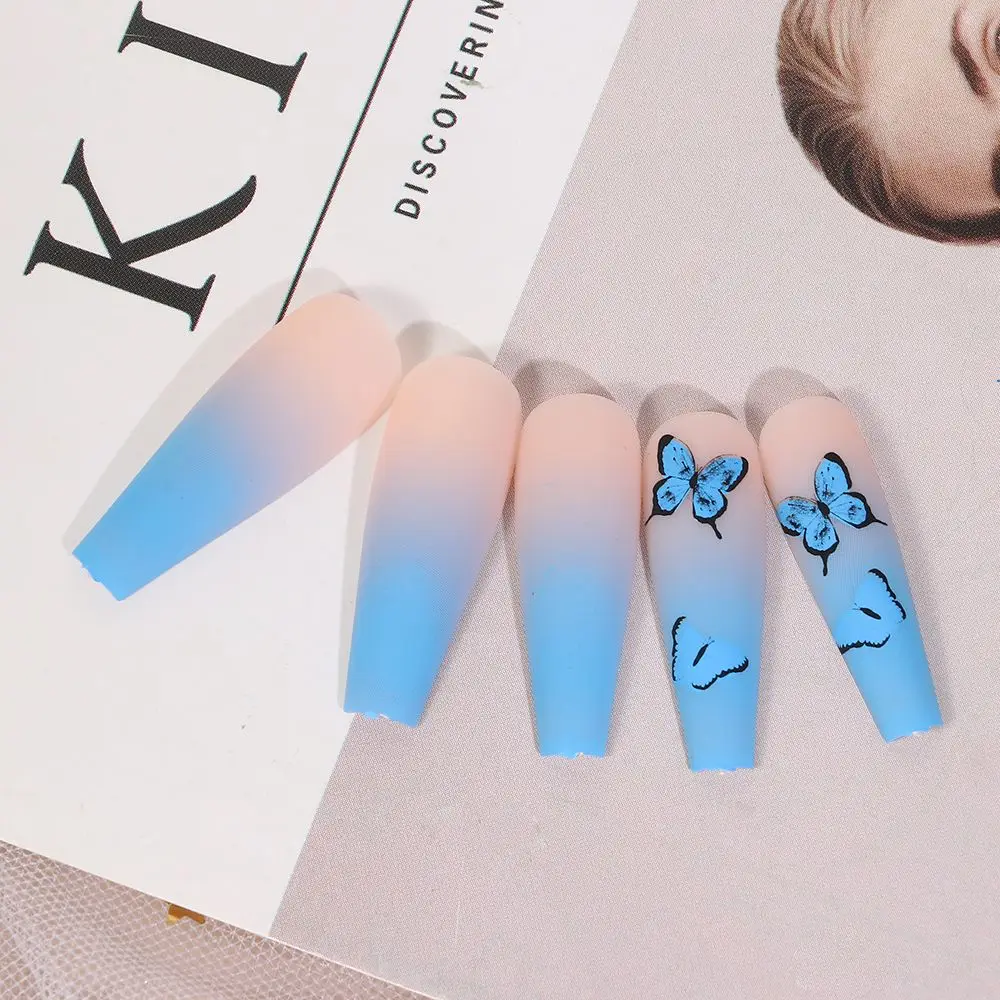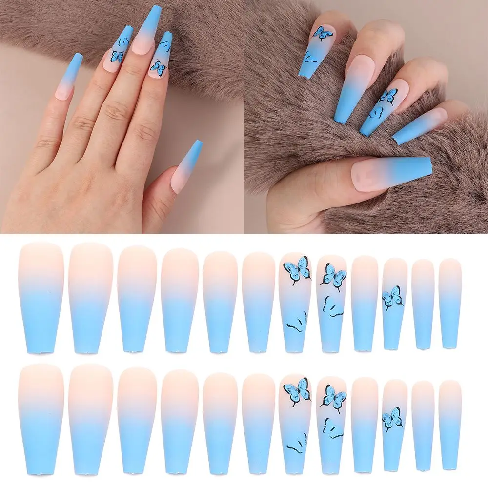 Новинка и высокое качество В том числе: 1 набор из 24 гвоздей + 1 лист (24 шт.) наклейки для ногтей. Цвет: как на изображении. Материал: пластик Название Iteam: искусственные накладные ногти Использование шагов: 1. Очистите кутикулу ногтей 2. Используйте пилку для ногтей, чтобы полировать ногти 3. Очистите ногти 4. Выберите подходящий двухсторонний стикер и Наклейте его 5. Выберите подходящие накладные ногти и приклейте их 6. Закончили и получили эффект Посылка включает в себя: 24 накладных наконечника для ногтей + 1 лист (24 шт.) желеобразная резинка