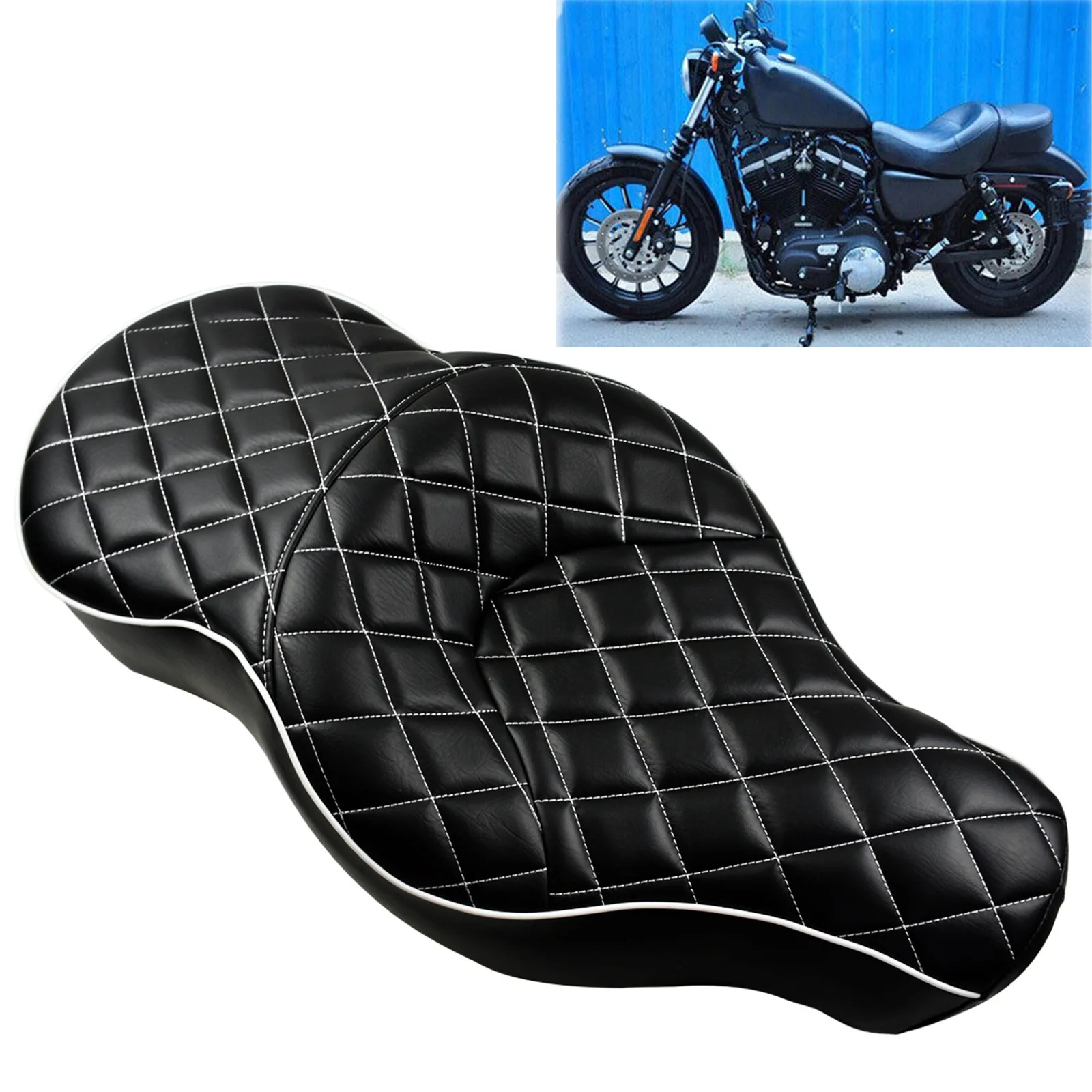 Мотоциклетное кожаное сидение с двумя передними и задними драйверами черного цвета для Harley Sportster XL 883 1200 48 Iron Cafe Racer Superlow