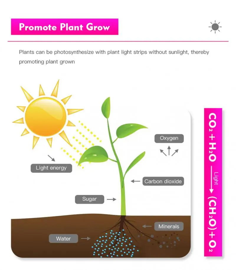 Высокая производительность. Во всем спектре красные и синие концы видимой части электромагнитного спектра используются растениями для фотосинтеза. Хлорофилл А и В являются основными пигментами для фотосинтеза растений, а пики поглощения расположены на расстоянии около 448 нм и 630 нм. Светильник обеспечивает спектральные длины волн и цвета для фотосинтетической реакции растений.