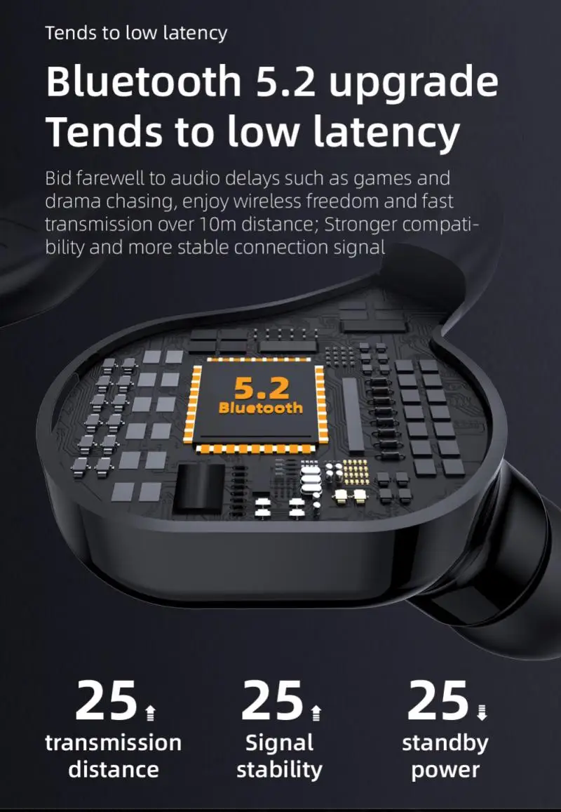 Низкая задержка: улучшенная версия Bluetooth 5,2 имеет низкую задержку, прощайтесь с задержками звука, такими как игры и драмы, наслаждайтесь беспроводной свободой и передавайте быстро на расстоянии 10 м; лучшая совместимость и более стабильный сигнал подключения.