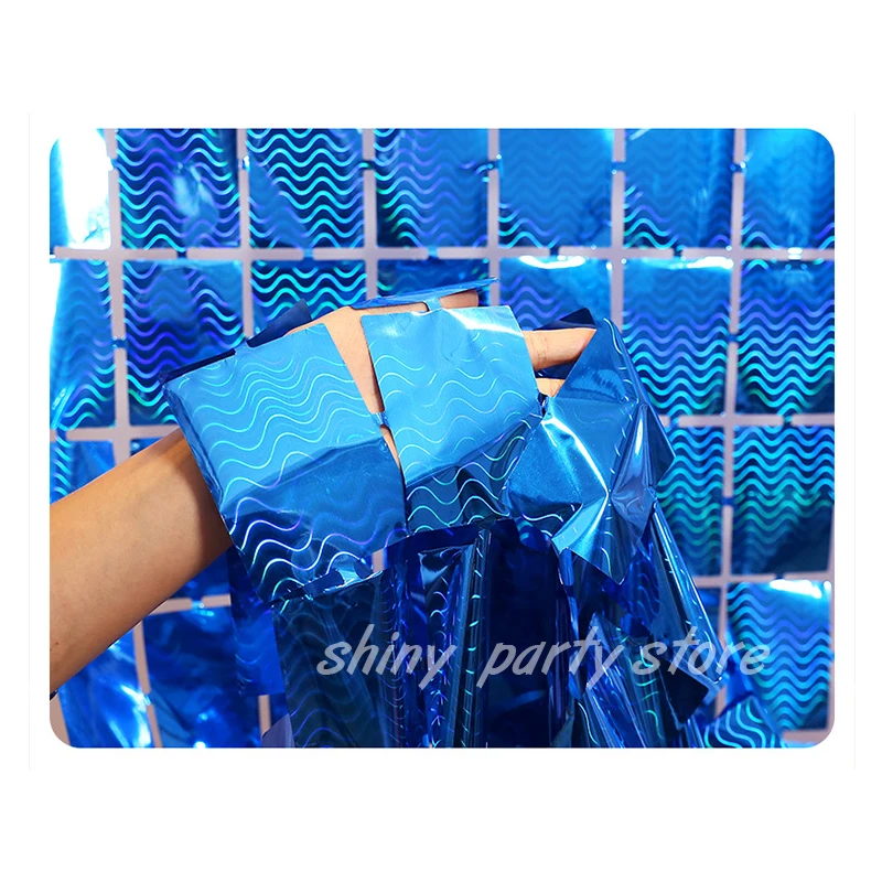 1 м × 2 м волнистая Лазерная квадратная шелковая занавеска для дождя вечерние свадебные декорации на день рождения яркая квадратная Золотая синяя красная занавеска
